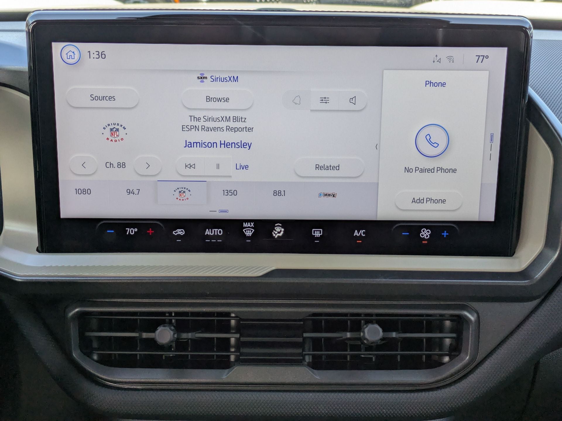 - AM/FM radio: SiriusXM