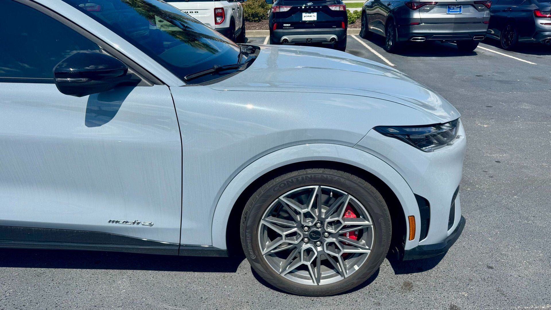 Jones Ford on Rivers Avenue in North Charleston is proud to offer a wide selection of quality new vehicles backed by experience, transparency, and a commitment to doing business the right way. We hand-pick our inventory and put every vehicle through a detailed inspection process so customers from Charleston, Summerville, Mount Pleasant, Hanahan, Moncks Corner, West Ashley, James Island, Daniel Island, Ladson, Wando, Ravenel, and Johns Island can shop with complete confidence. From hardworking trucks and versatile SUVs to dependable daily drivers, our used vehicles are competitively priced and ready for the road, all supported by a knowledgeable team that believes buying a vehicle should be clear, honest, and pressure-freeâjust like it used to be. â Passed Dealer Inspection â Recent Oil Change â WHEELS: 20 MACHINED FACE ALUMINUM â PANORAMIC FIXED-GLASS ROOF â Infrared Reflective (IRR) windshield â Glacier Gray Metallic TriCoat â MUSTANG MACH-E GT PERFORMANCE UPGRADE â INTERIOR PROTECTION PACKAGE â MOBILE POWER CORD (120V/240V) This 2025 Ford Mustang Mach-E GT is a remarkable all-electric vehicle that combines performance, style, and cutting-edge technology. With its sleek, modern design and impressive all-wheel-drive powertrain, this Mustang Mach-E GT delivers an exhilarating driving experience that is sure to turn heads. The single-speed electric motor provides instant acceleration and seamless power delivery, while the advanced battery system offers an exceptional MPGe rating of 95 city and 85 highway. Beyond its dynamic performance, this Mustang Mach-E GT is packed with premium features that elevate the driving experience. The panoramic fixed-glass roof floods the cabin with natural light, creating an airy and inviting atmosphere. The SYNC 4A infotainment system with enhanced voice recognition keeps you connected and in control, while the 10-speaker Bang & Olufsen sound system provides a concert-hall-quality audio experience. The heated, perforated ActiveX performance seats and heated steering wheel ensure comfort in any weather, and the interior protection package helps keep your investment looking its best. Combining the iconic Mustang heritage with cutting-edge electric technology, this 2025 Ford Mustang Mach-E GT is a true game-changer in the world of high-performance electric vehicles. Whether you're commuting, running errands, or seeking an exhilarating driving experience, this Mustang Mach-E GT is ready to deliver. Visit us at Jones Ford on Rivers Avenue in North Charlesto